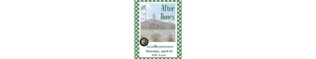 Join us for After Hours at Bank Independent at 1425 Beltline Road SW in Decatur on Thursday, April 23 from 4:30 to 6 p.m. This come-and-go event will be the perfect opportunity to network with fellow Chamber members, exchange business cards and enjoy refreshments in a relaxed, after-work setting.