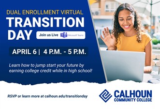 Webinar - find event link and more information at calhoun.edu/transitionday